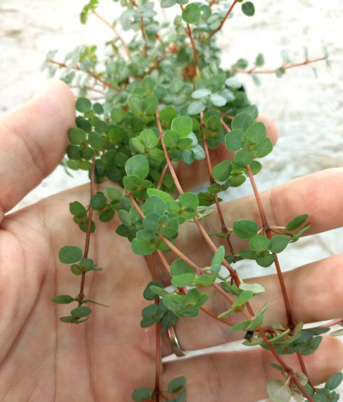 Common name(s): Red Stem Tears, Blue baby Tears, Silver Sprinkles, Silver-leaved artillery plant